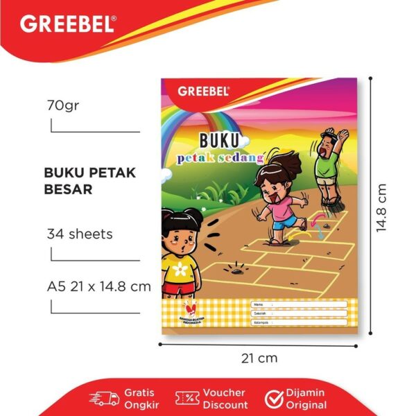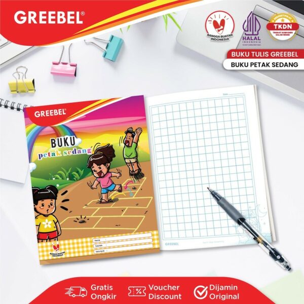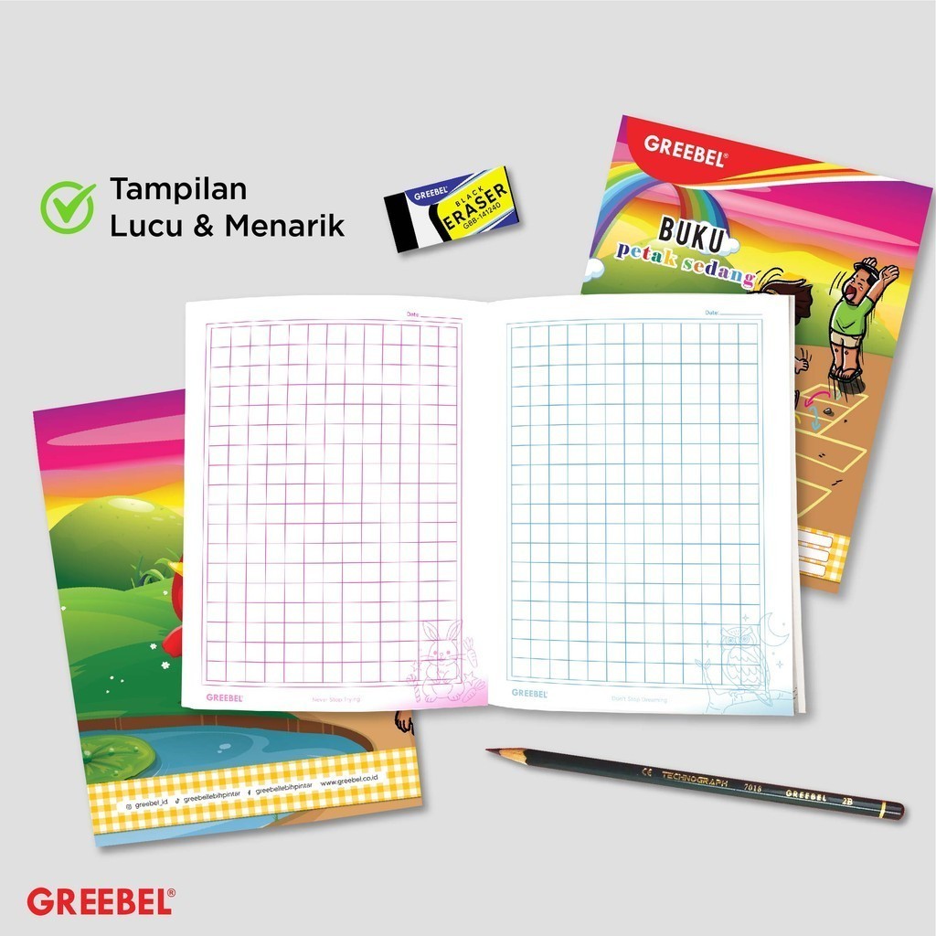GREEBEL Buku Petak Sedang l A5 34 Lembar / Buku Kotak Kotak / Buku Anak Sekolah
