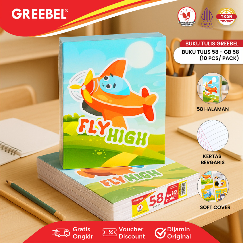GREEBEL Buku Tulis 38 58 Lembar (10PCS/PACK) Ukuran A5 Buku Tulis Sekolah / School Book