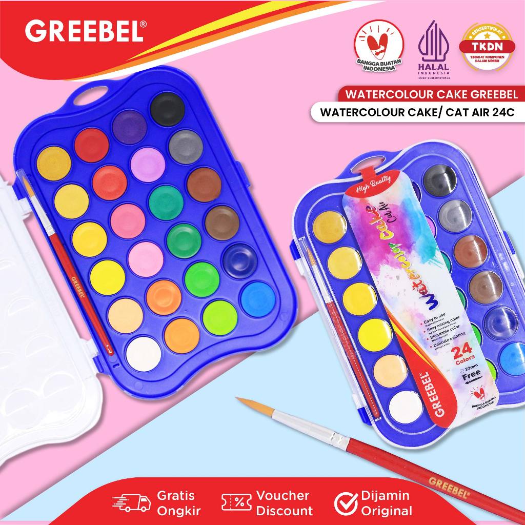 GREEBEL Watercolor Cake adalah cat air padat yang sempurna untuk melukis dan mewarnai. Produk ini hadir dengan berbagai ukuran dan dilengkapi dengan kuas gratis, menjadikannya pilihan ideal bagi pemula dan pelukis berpengalaman. Dengan warna-warna cerah dan desain persegi yang elegan, cat air ini mudah larut dalam air dan sangat praktis digunakan.