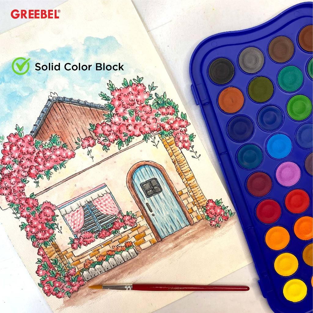 GREEBEL Watercolor Cake adalah cat air padat yang sempurna untuk melukis dan mewarnai. Produk ini hadir dengan berbagai ukuran dan dilengkapi dengan kuas gratis, menjadikannya pilihan ideal bagi pemula dan pelukis berpengalaman. Dengan warna-warna cerah dan desain persegi yang elegan, cat air ini mudah larut dalam air dan sangat praktis digunakan.