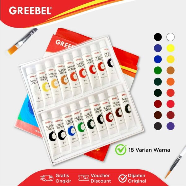 GREEBEL Cat Lukis Akrilik Set 18 Warna / Cat Acrylic Set (18x10ML)
