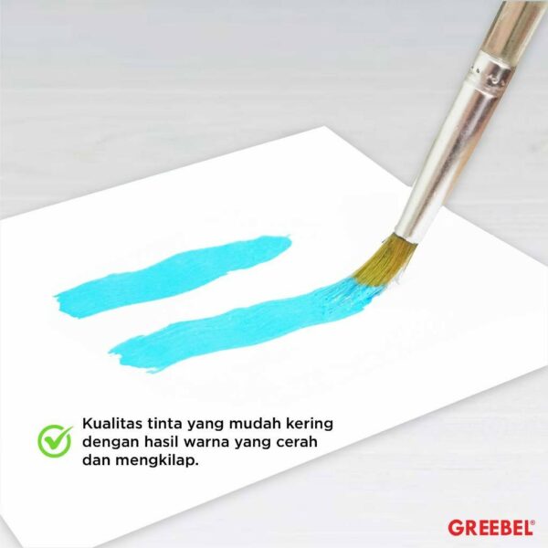 GREEBEL CAT AKRILIK SET ADALAH CAT LUKIS AKRILIK DENGAN 24 WARNA CERAH DALAM UKURAN 10 ML. COCOK UNTUK MELUKIS DI BERBAGAI MEDIA, CAT INI MENAWARKAN WARNA PEKAT, CEPAT KERING, DAN MUDAH DIGUNAKAN UNTUK TEKNIK LUKIS BERLAPIS. HASILNYA CERAH, MENGKILAP, DAN MEMILIKI DAYA LEKAT KUAT, MEMBUAT LUKISAN TAMPAK HIDUP DAN TAHAN LAMA.