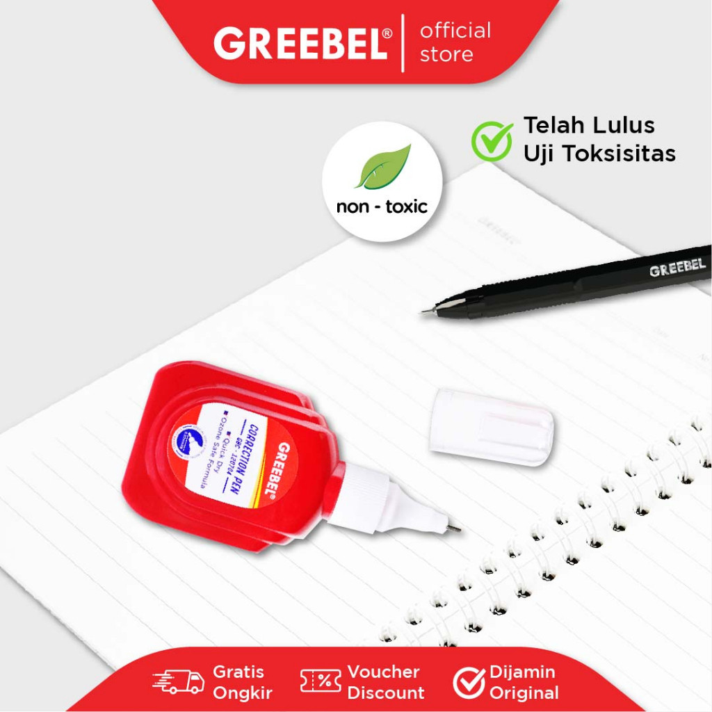 GREEBEL Correction Pen Tip-Ex adalah pilihan terbaik untuk mengoreksi kesalahan tulis dengan cepat dan mudah. Dilengkapi dengan ujung pena presisi, koreksi jadi lebih rapi dan akurat, bahkan pada tulisan kecil. Dengan formula cairan yang cepat kering, Anda bisa langsung menulis ulang tanpa noda. Desain ergonomis membuatnya nyaman digenggam, ideal untuk pemakaian di rumah, sekolah, atau kantor.