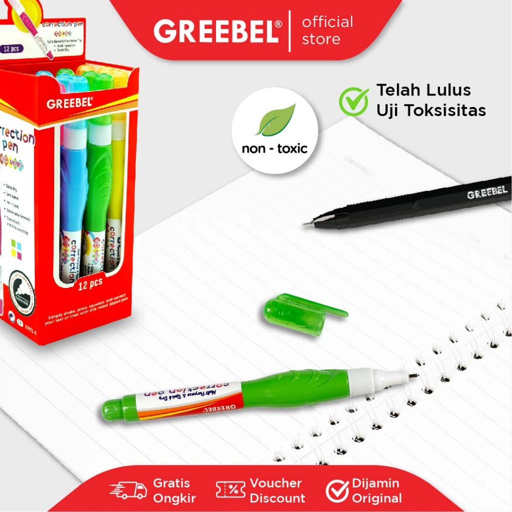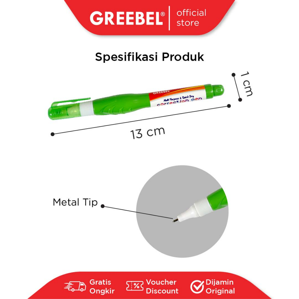 GREEBEL Correction Pen / GBC 120710 (1PCS) / Penghapus Pulpen Cair / Tipe x / Tip X Cepat Kering