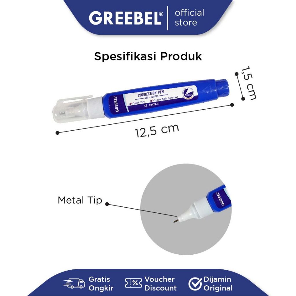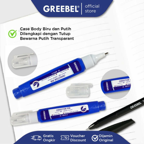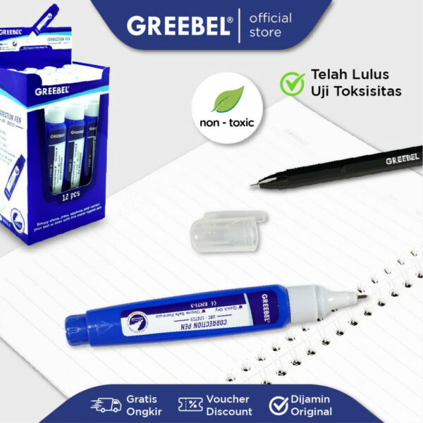 GREEBEL Correction Pen / GBC 120715 (1PCS) / Penghapus Pulpen Cair / Tipe x / Tip X Cepat Kering