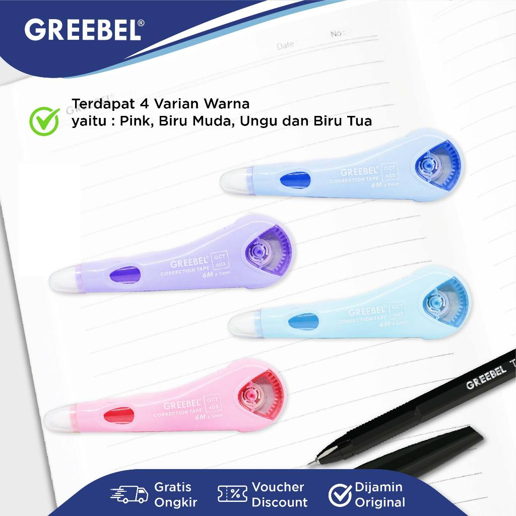 GREEBEL Correction Tape GCT-603 Pastel Lucu / Tip Ex Kertas Roll Pita Koreksi Pulpen