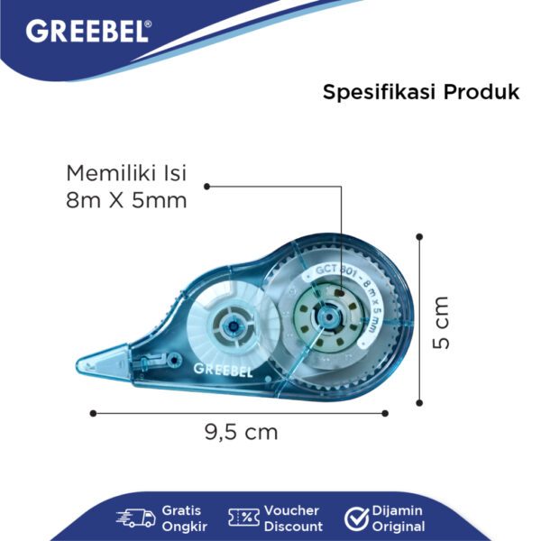 GREEBEL Correction Tape GCT-801 / Tip Ex Kertas Roll Pita Koreksi Pulpen