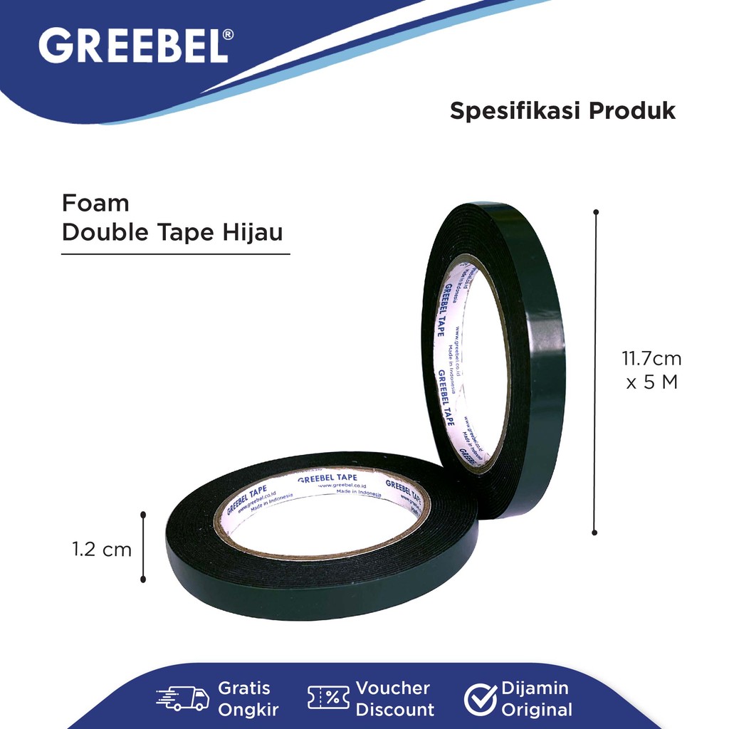 GREEBEL Double Tape Foam / Selotip Foam 1M X 12MM x 5M (PCS) / Isolasi Bolak Balik / Spons Foam