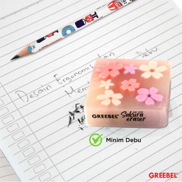 4. Tahan Lama: Penghapus pensil Greebel dibuat dari bahan berkualitas tinggi, sehingga awet digunakan meski sering dipakai.