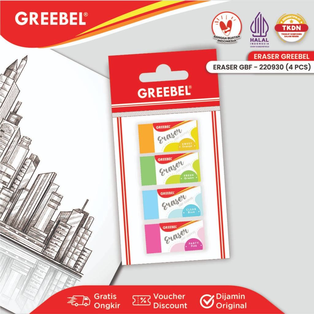 GREEBEL Eraser Stip Hapusan GBF-220930M (4PCS/SET) Penghapus Pensil