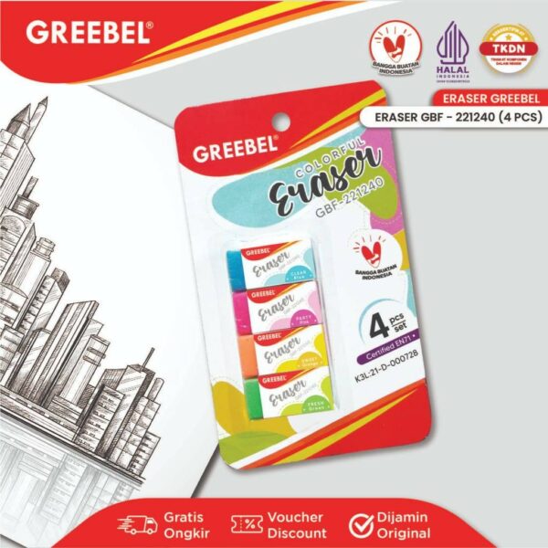 4. Tahan Lama: Penghapus pensil Greebel dibuat dari bahan berkualitas tinggi, sehingga awet digunakan meski sering dipakai.