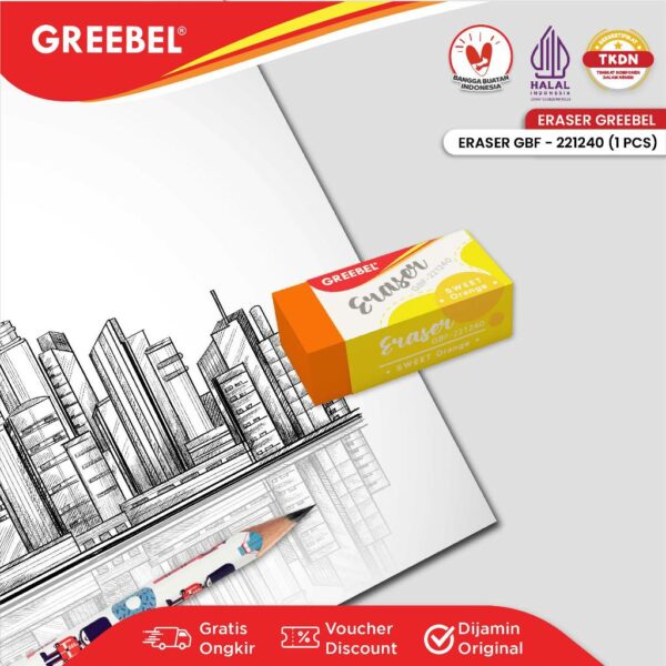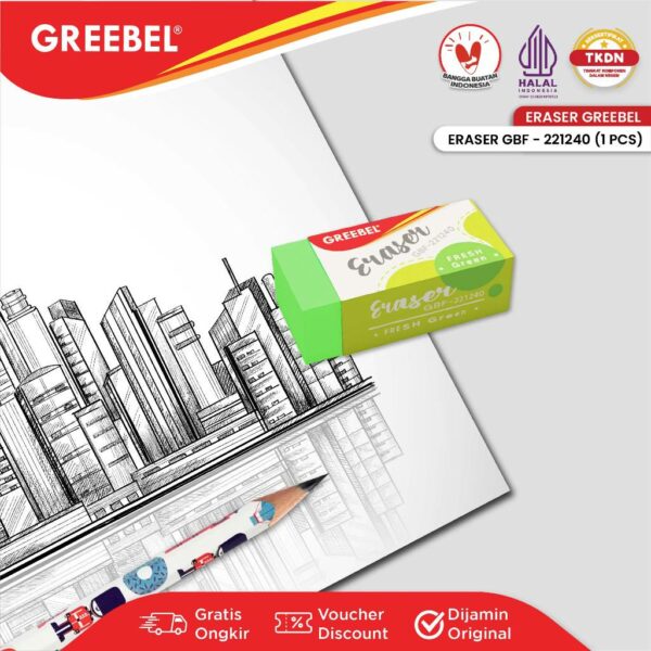 > GREEBEL Penghapus / Eraser GBW 120640 memiliki ukuran yang kecil, praktis dan mudah masuk di dalam tempat pensil