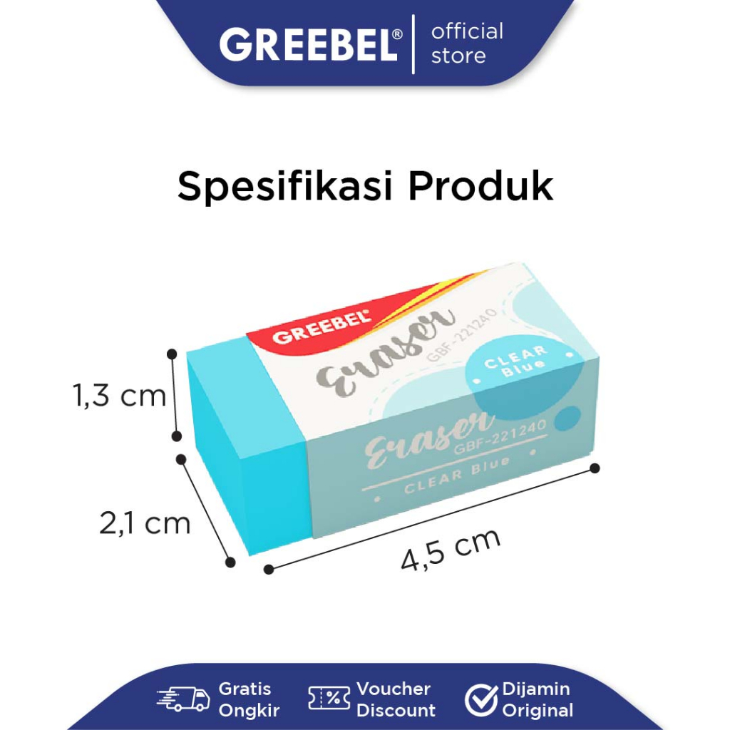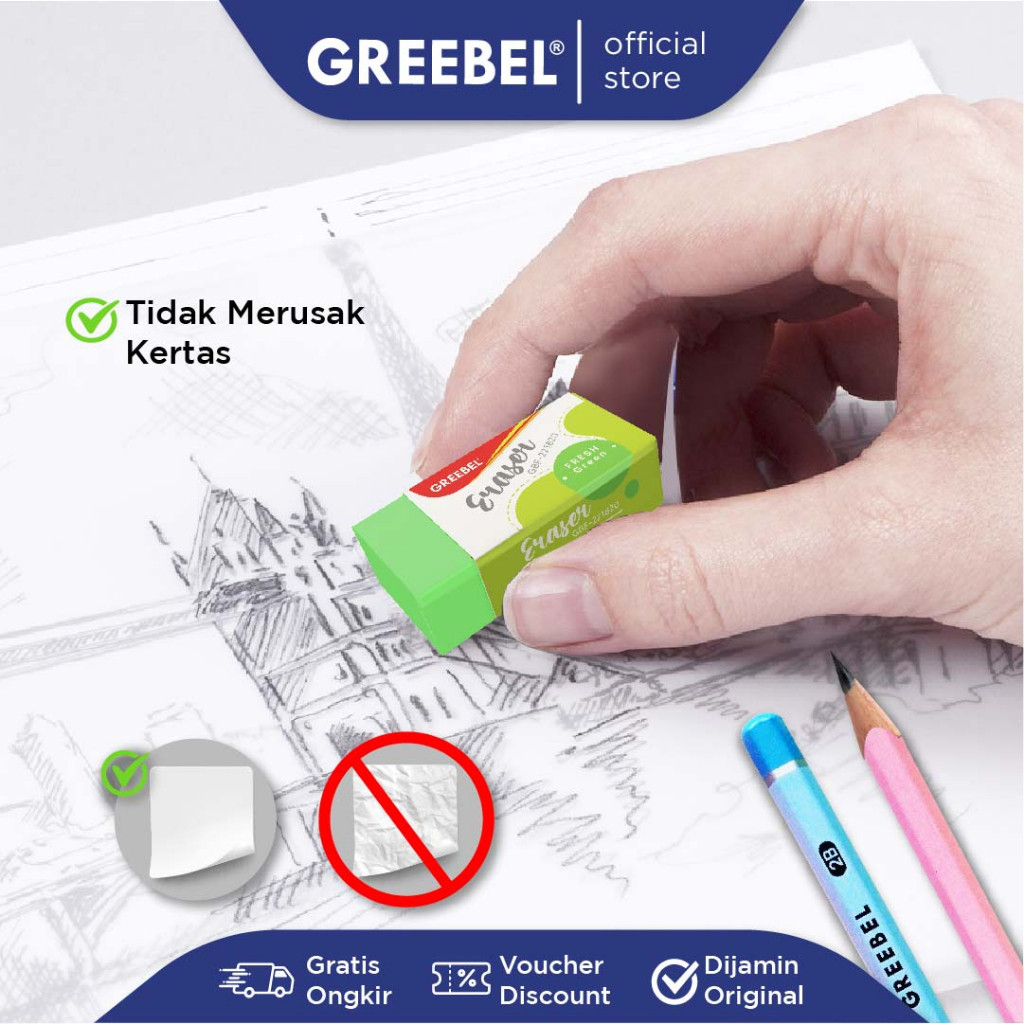 1. Bersih dan Efektif Menghapus: Penghapus pensil Greebel mampu menghapus goresan pensil dengan bersih tanpa meninggalkan bekas. Sangat cocok untuk kebutuhan menulis dan menggambar.