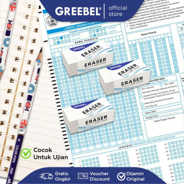 4. Tahan Lama: Penghapus pensil Greebel dibuat dari bahan berkualitas tinggi, sehingga awet digunakan meski sering dipakai.