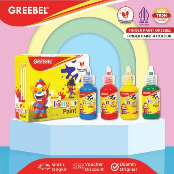 GREEBEL Finger Paint 4 Warna / Cat Air / Edukasi Dan Kreativitas Anak / Washable