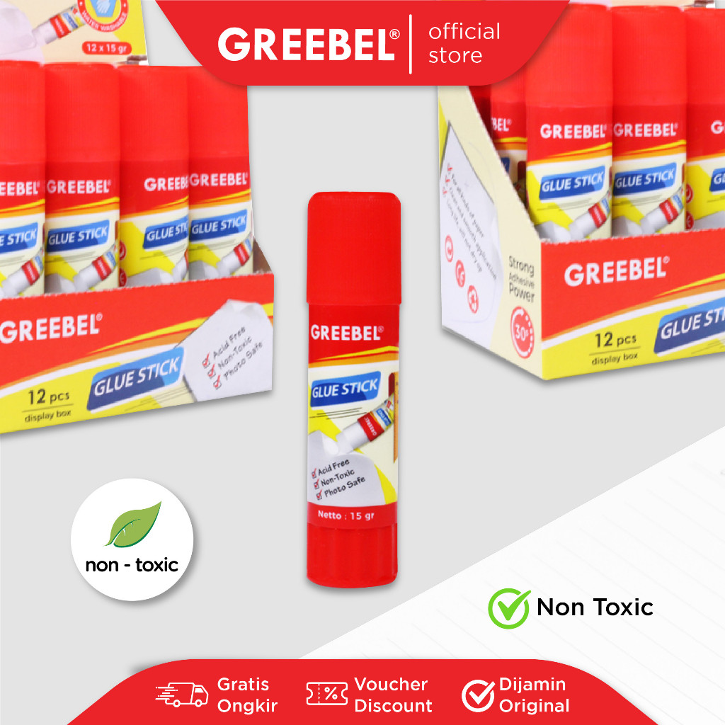 GREEBEL Glue Stick atau lem putar ini memiliki daya rekat kuat dan cepat kering. Bebas bau, aman untuk anak-anak, serta cocok untuk semua jenis kertas. Pilihan sempurna untuk sekolah anak, kantor, dan kerajinan tangan.