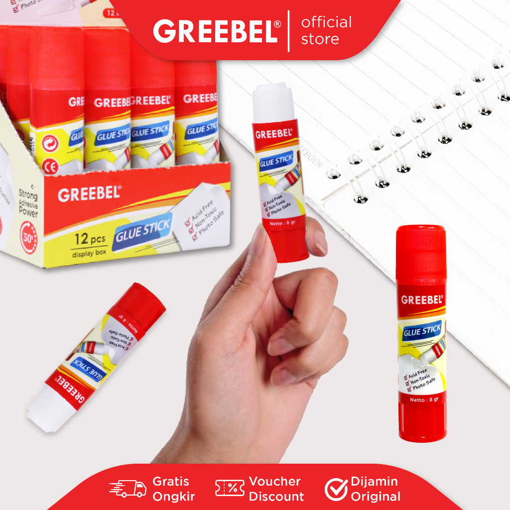 GREEBEL Glue Stick atau lem putar Greebel ini memiliki daya rekat kuat dan cepat kering. Bebas bau, aman untuk anak-anak, serta cocok untuk semua jenis kertas. Pilihan sempurna untuk sekolah anak, kantor, dan kerajinan tangan.