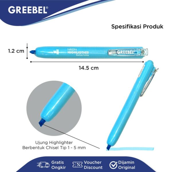 GREEBEL Highlighter Penanda HL-705 Neon Stabilo ( 1 PCS ) Spidol Greebel