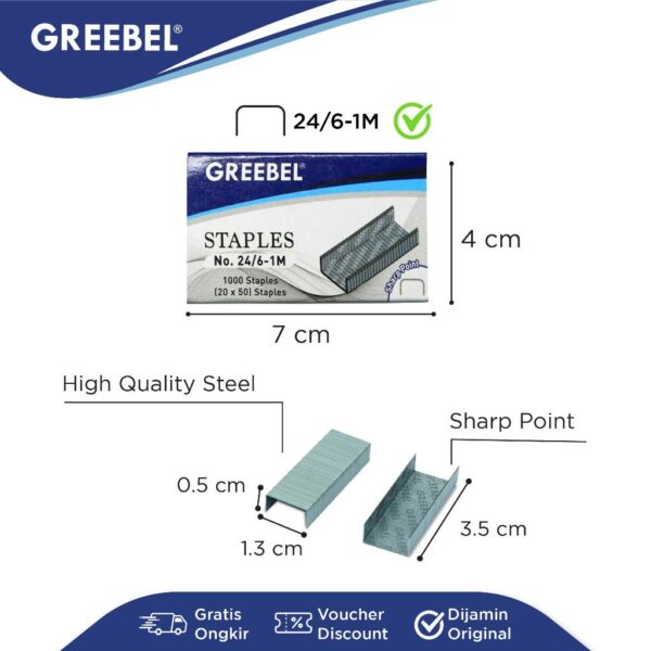 GREEBEL Staples 24 / 6-1M Cocok digunakan untuk Stapler GREEBEL : HD-45, HD-45N, TP-8H