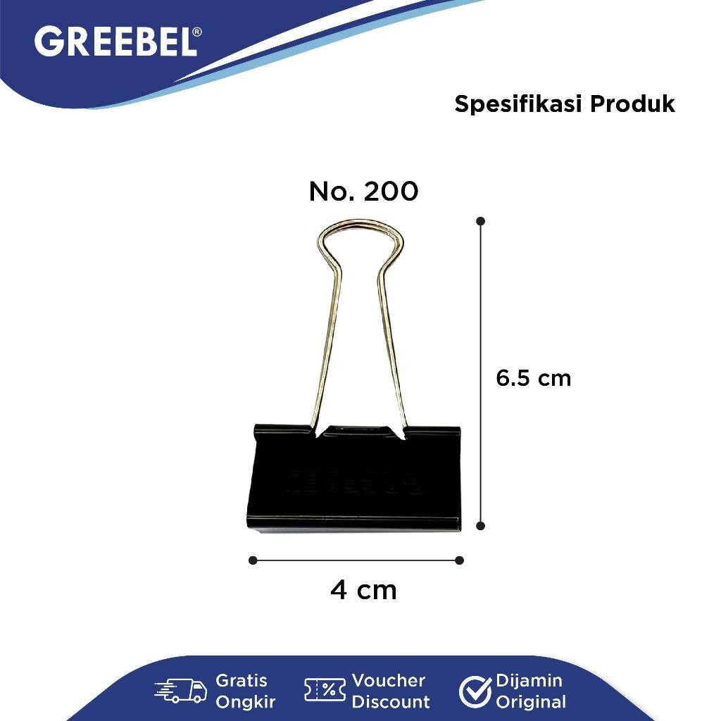 GREEBEL Klip Kertas Binder Clip / Penjepit Kertas Hitam Besar Kecil 200 (41MM)
