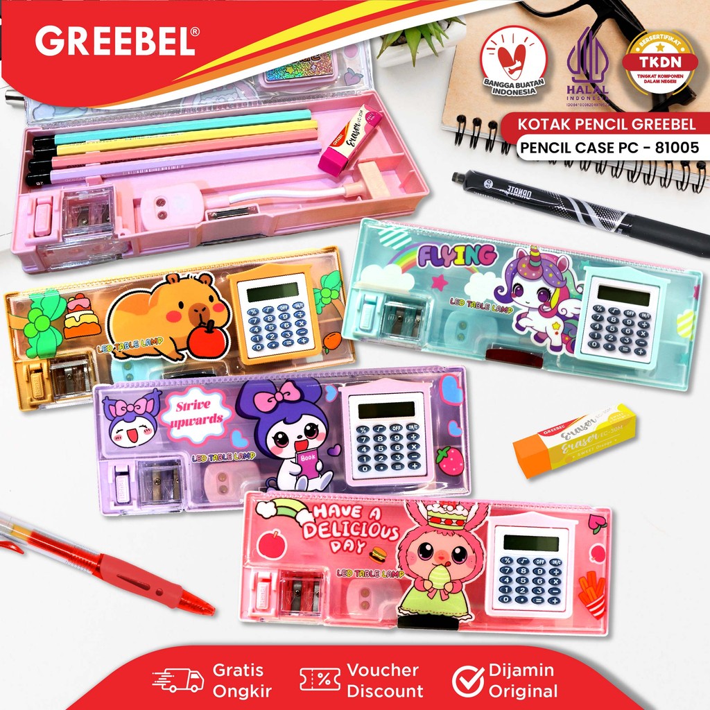 GREEBEL Kotak Pensil Magnet Kalkulator Lampu Belajar Meja Kecil / Tempat Pensil Serutan Lucu (81005) / Pencil Case Pensil Bag Kalkulator Lampu Meja Sekolah