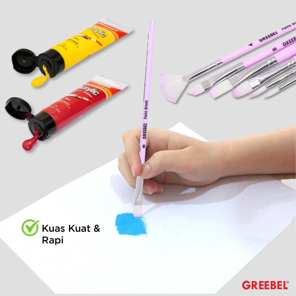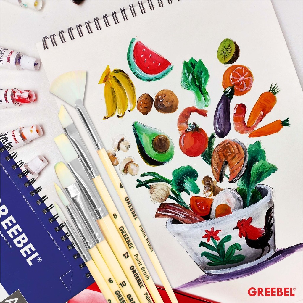 KUAS LUKIS GREEBEL KUAS LUKIS BERKUALITAS DENGAN TEXTURE HALUS DAN GAGANG ERGONOMIS, COCOK UNTUK MELUKIS DENGAN CAT AIR, AKRILIK, DAN CAT MINYAK. PILIHAN TEPAT UNTUK PEMULA DAN PROFESIONAL, TERSEDIA DALAM BERBAGAI UKURAN.