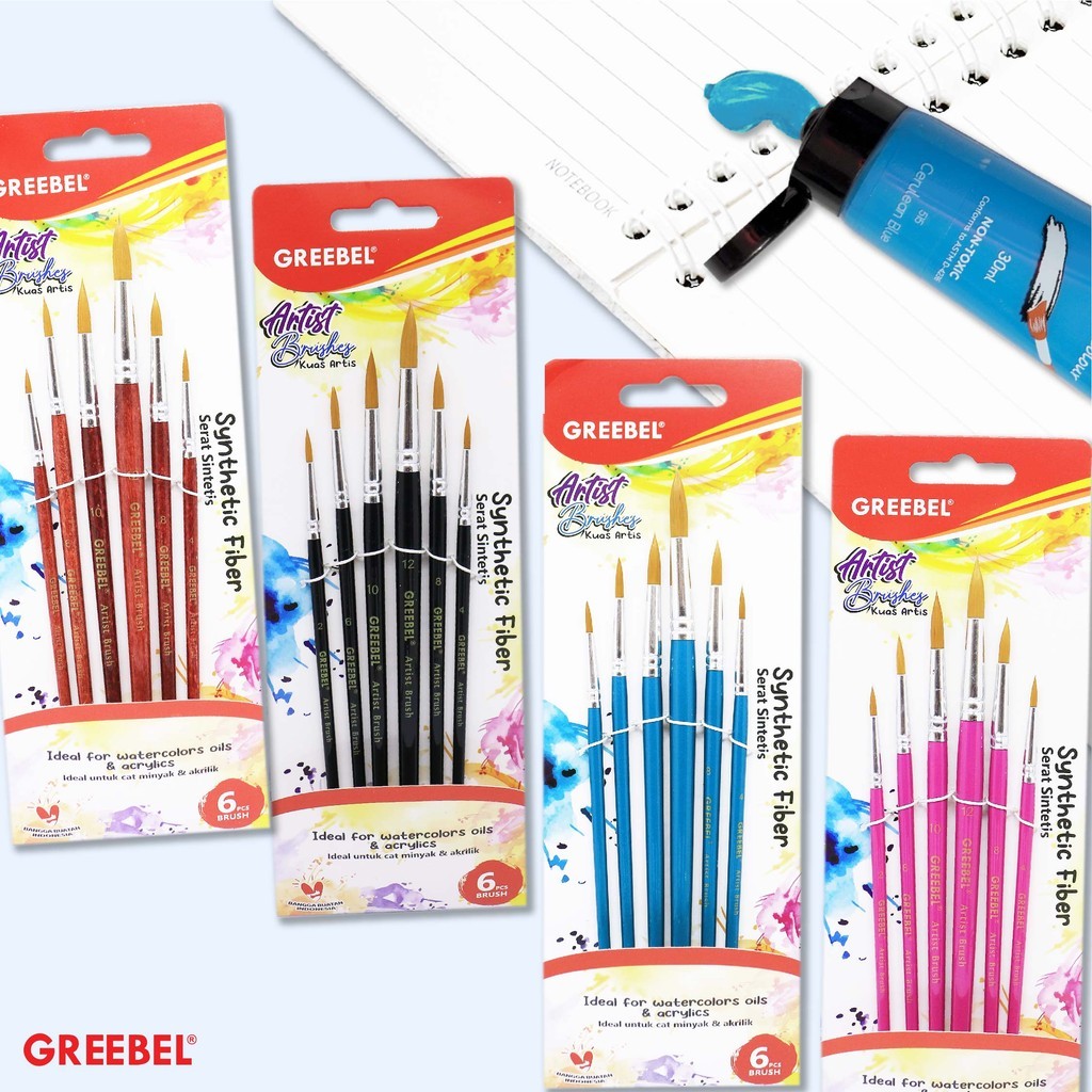KUAS LUKIS GREEBEL KUAS LUKIS BERKUALITAS DENGAN TEXTURE HALUS DAN GAGANG ERGONOMIS, COCOK UNTUK MELUKIS DENGAN CAT AIR, AKRILIK, DAN CAT MINYAK. PILIHAN TEPAT UNTUK PEMULA DAN PROFESIONAL, TERSEDIA DALAM BERBAGAI UKURAN.