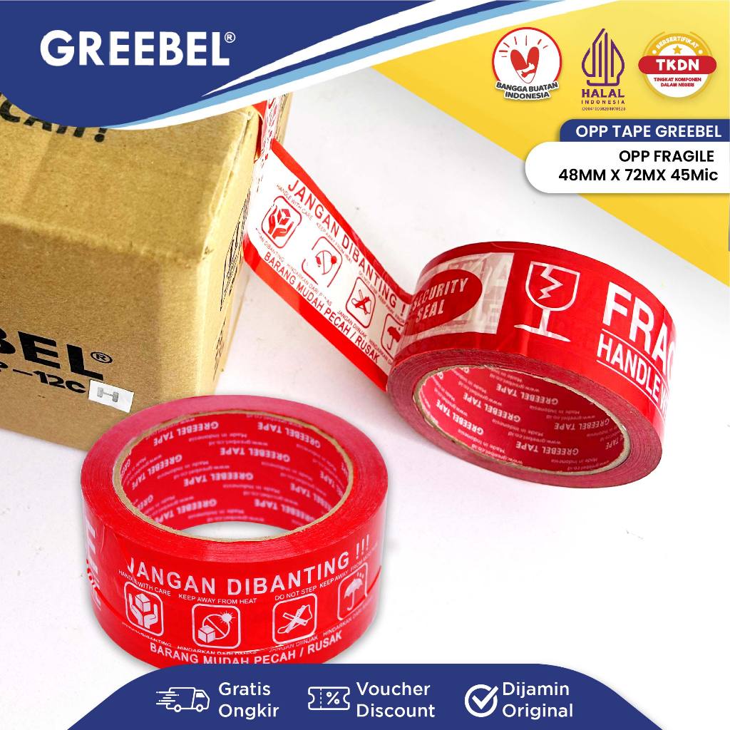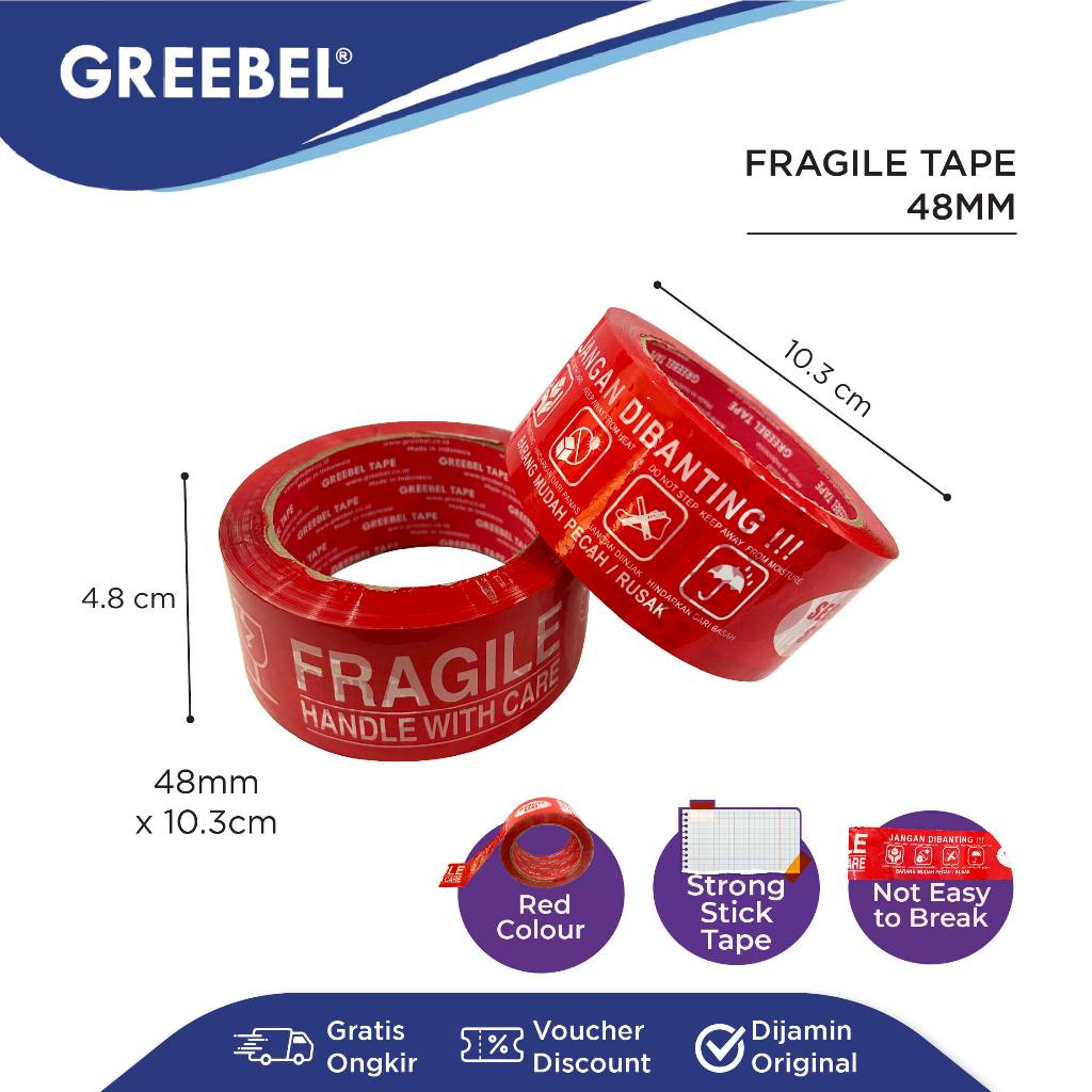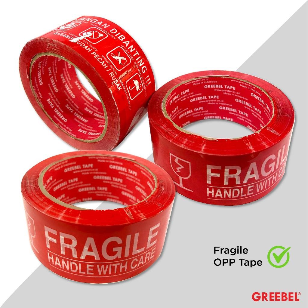 GREEBEL Lakban Fragile / Selotip Fragile dan Unboxing 48 MM X 72 YARD (PCS) / Opp Tape