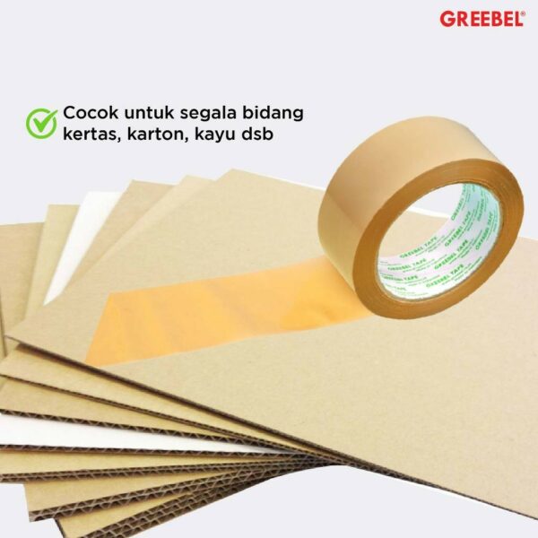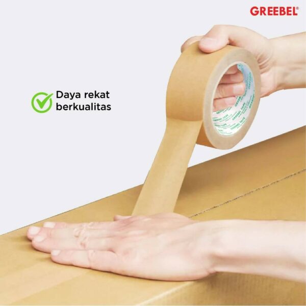 > Daya Rekat Tinggi: GREEBEL Lakban dirancang dengan adhesive kuat yang memastikan daya rekat maksimal, ideal untuk menjaga paket tetap aman selama proses pengiriman.