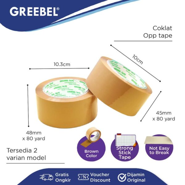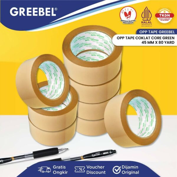 GREEBEL Lakban Selotip Cokelat Isolasi Tape 80 Yard / Core Green 45MM (PCS)