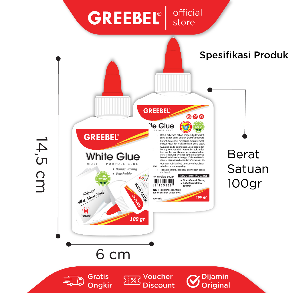 GREEBEL Lem Kertas White Glue 100 Gram (100G / PCS) / Lem Kertas / Lem Putih / Lem Cair