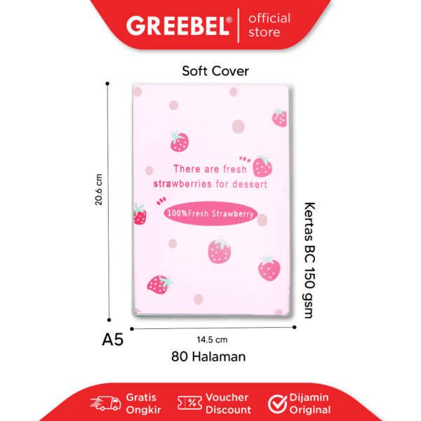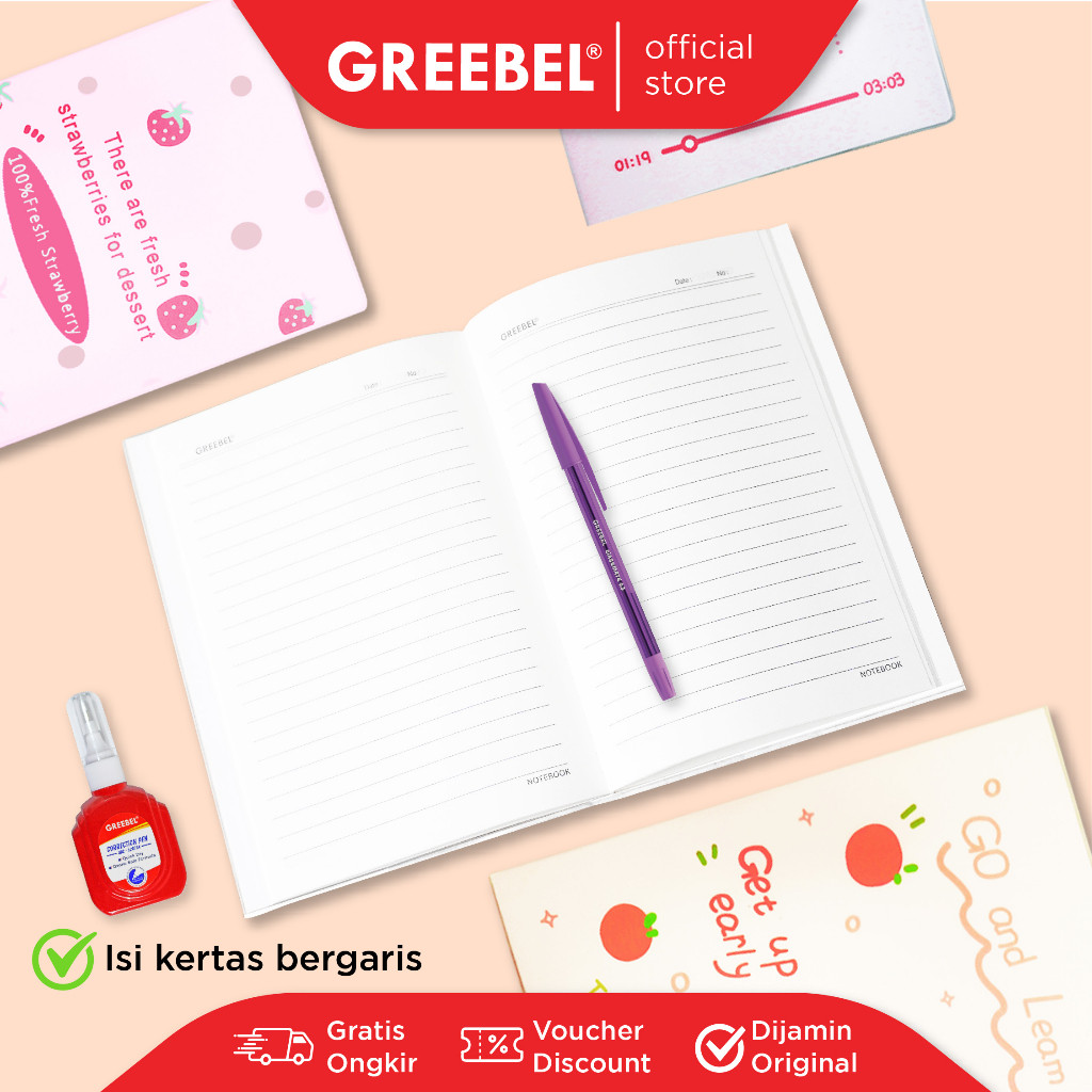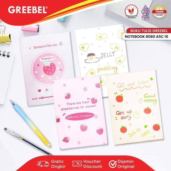 GREEBEL Notebook A5 Buku Diary Aesthetic / Note Book 8080 A5C 16 / Buku Note Binder 80 Halaman / Buku Tulis Lucu Pastel