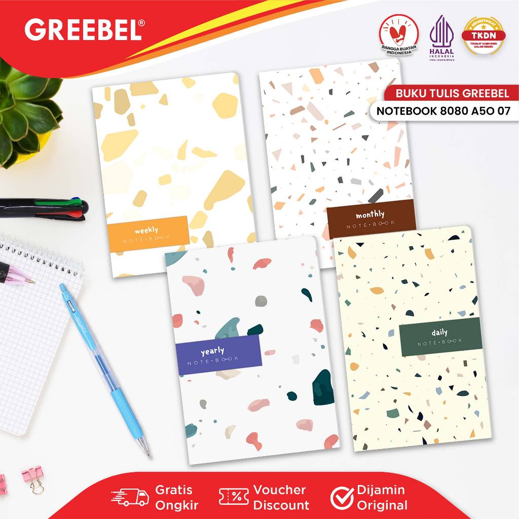 GREEBEL Notebook A5 Buku Diary Aesthetic / Note Book 8080 A5O 07 / Buku Note Binder 80 Halaman / Buku Tulis Lucu Pastel