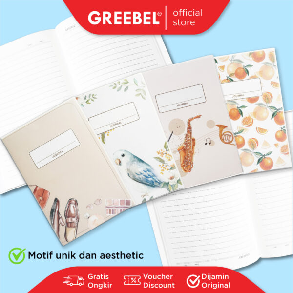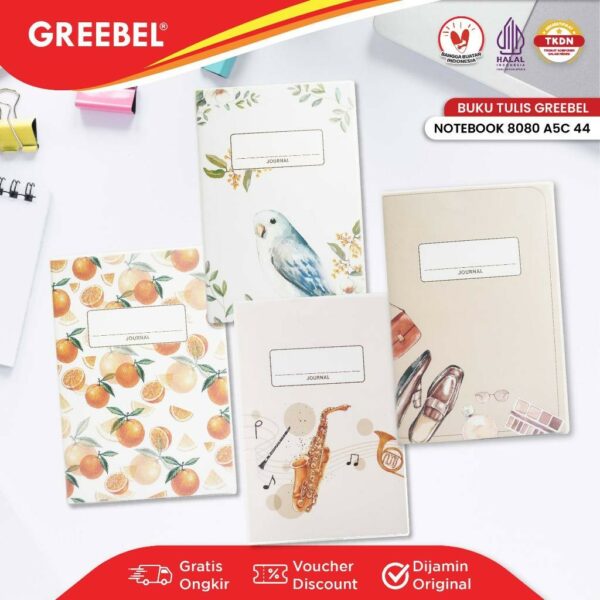 GREEBEL Notebook A5 Buku Diary Aesthetic / Notebook 8080 A5C 44 / Buku Note Binder 80 Halaman / Buku Tulis Lucu Pastel