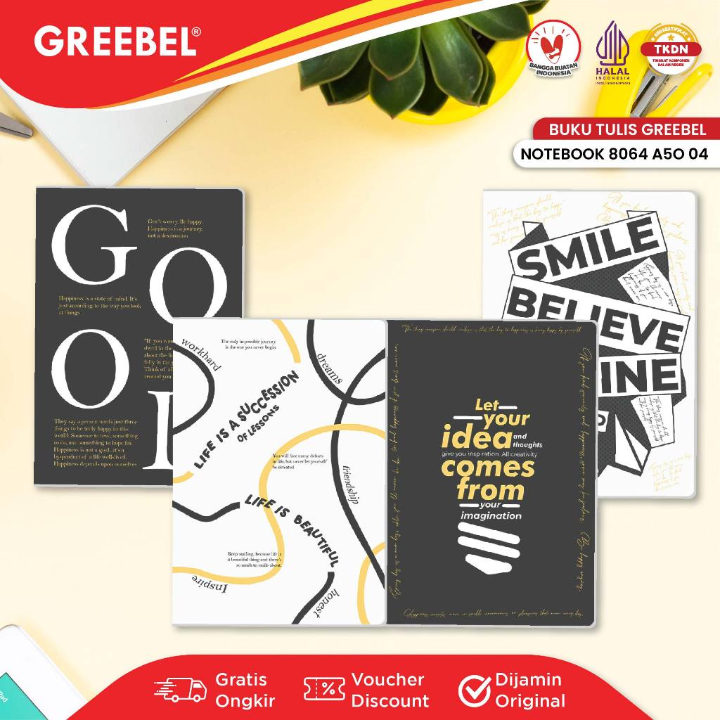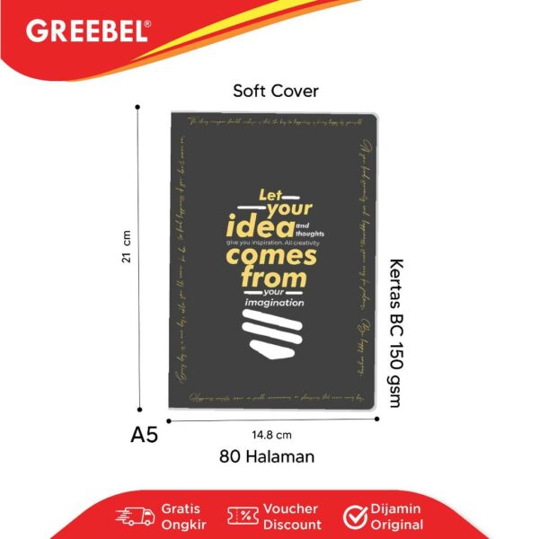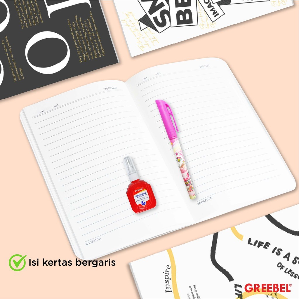 GREEBEL Notebook A5 Buku Diary Aesthetic / Notebook 8080 A5O 04 / Buku Note Binder 80 Halaman / Buku Tulis Lucu Pastel