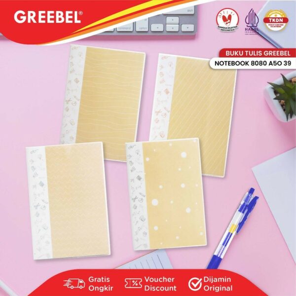 GREEBEL Notebook A5 Buku Diary Aesthetic / Notebook 8080 A5O 39 / Buku Note Binder 80 Halaman / Buku Tulis Lucu Pastel