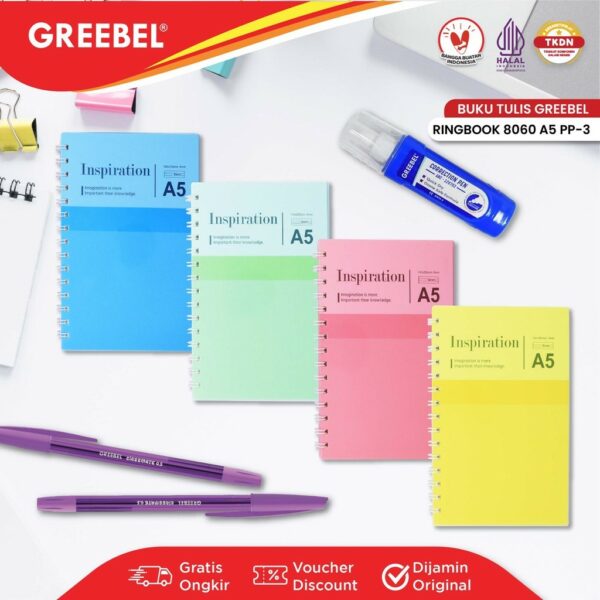 GREEBEL Notebook A5 Buku Diary Aesthetic / Ringbook 8060 A5 PP-3 / Buku Note Binder 60 Halaman / Buku Tulis Lucu Pastel