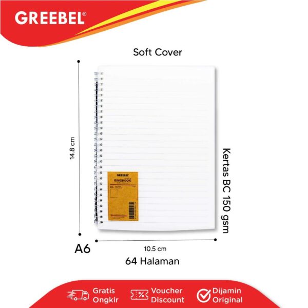 GREEBEL Notebook A6 Buku Diary Aesthetic / Ringbook 8060 A6 PP-1 / Buku Note Binder 64 Halaman / Buku Tulis Lucu Pastel