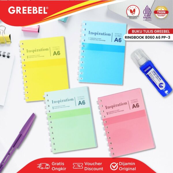 GREEBEL Notebook A6 Buku Diary Aesthetic / Ringbook 8060 A6 PP-3 / Buku Note Binder 60 Halaman / Buku Tulis Lucu Pastel