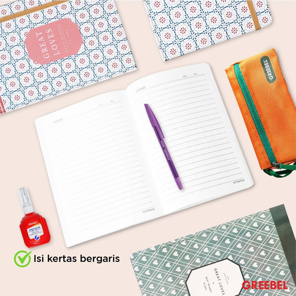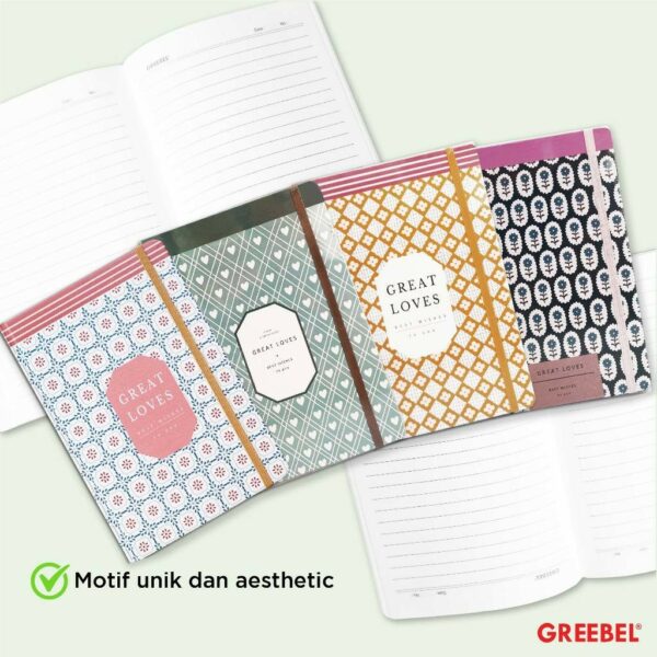 GREEBEL Notebook Buku Diary Aesthetic / Notebook 80100 A50 18 / Buku Note Binder 100 Halaman / Buku Tulis Lucu Pastel