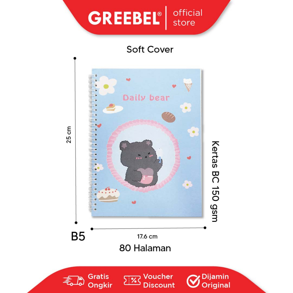 GREEBEL Notebook Buku Tulis Ring (Ringbook 8080 B5C 10) / Buku Tulis Catatan Notebook Buku Ring