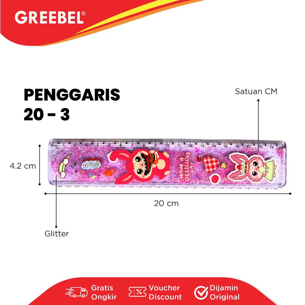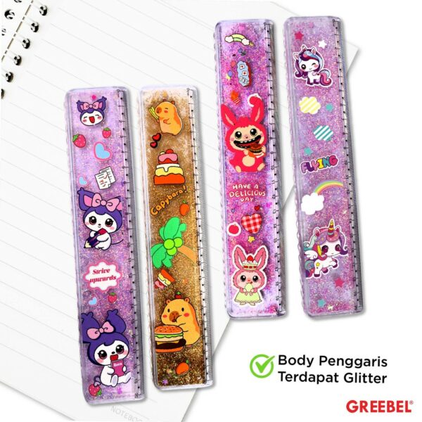 GREEBEL Penggaris Karakter Air Glitter 20cm / Ruler Glitter / Penggaris Lucu Sekolah