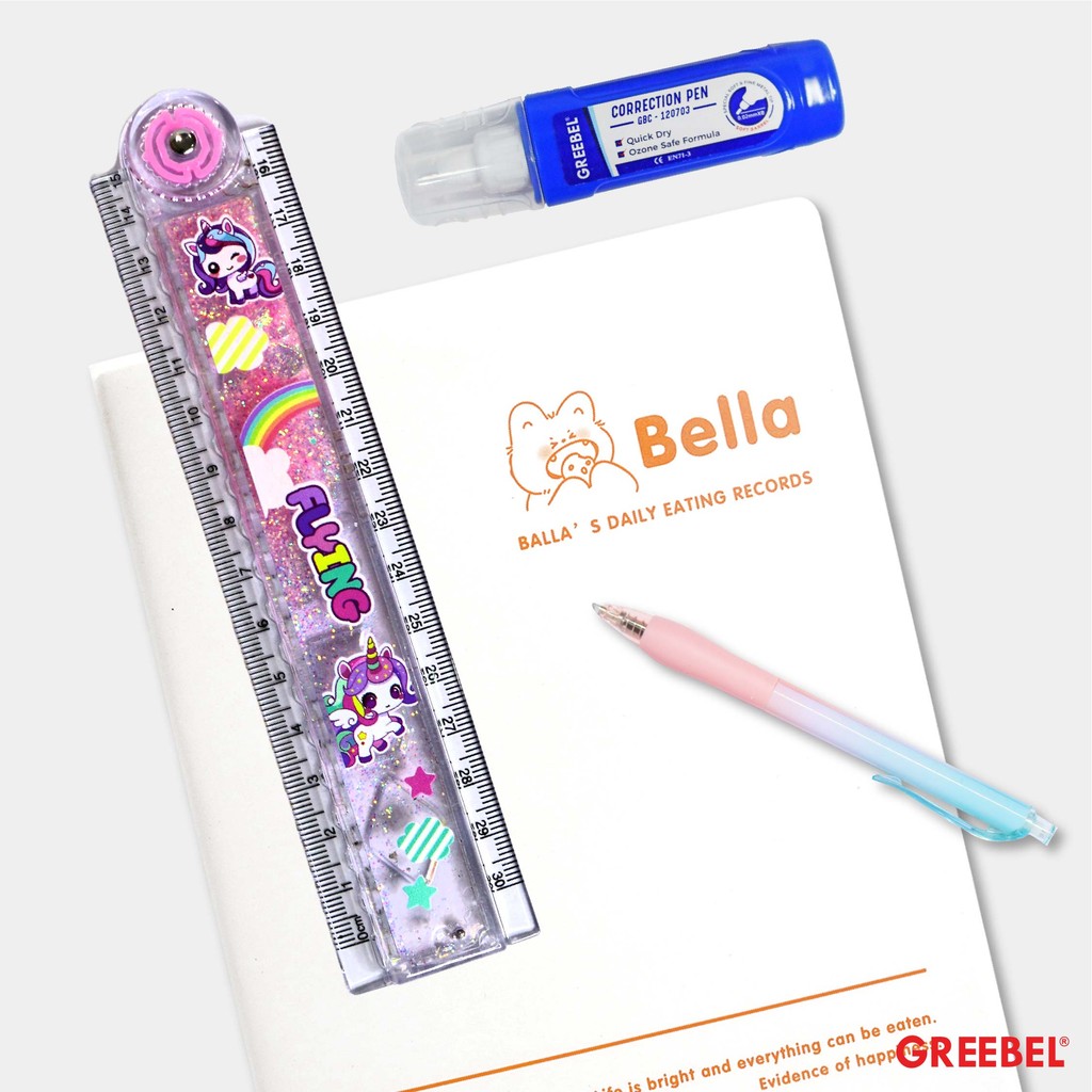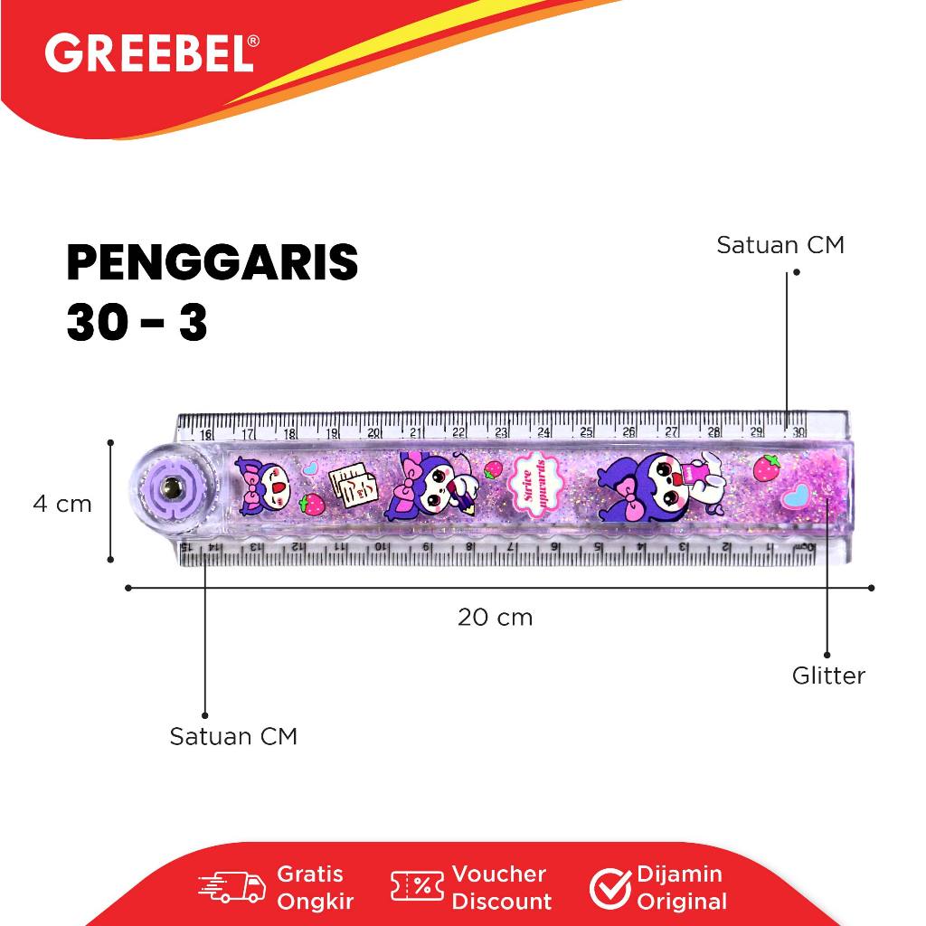 GREEBEL Penggaris Lipat Karakter Glitter 30cm / Ruler Foldable Glitter (30-3B) / Penggaris Lipat Lucu Sekolah