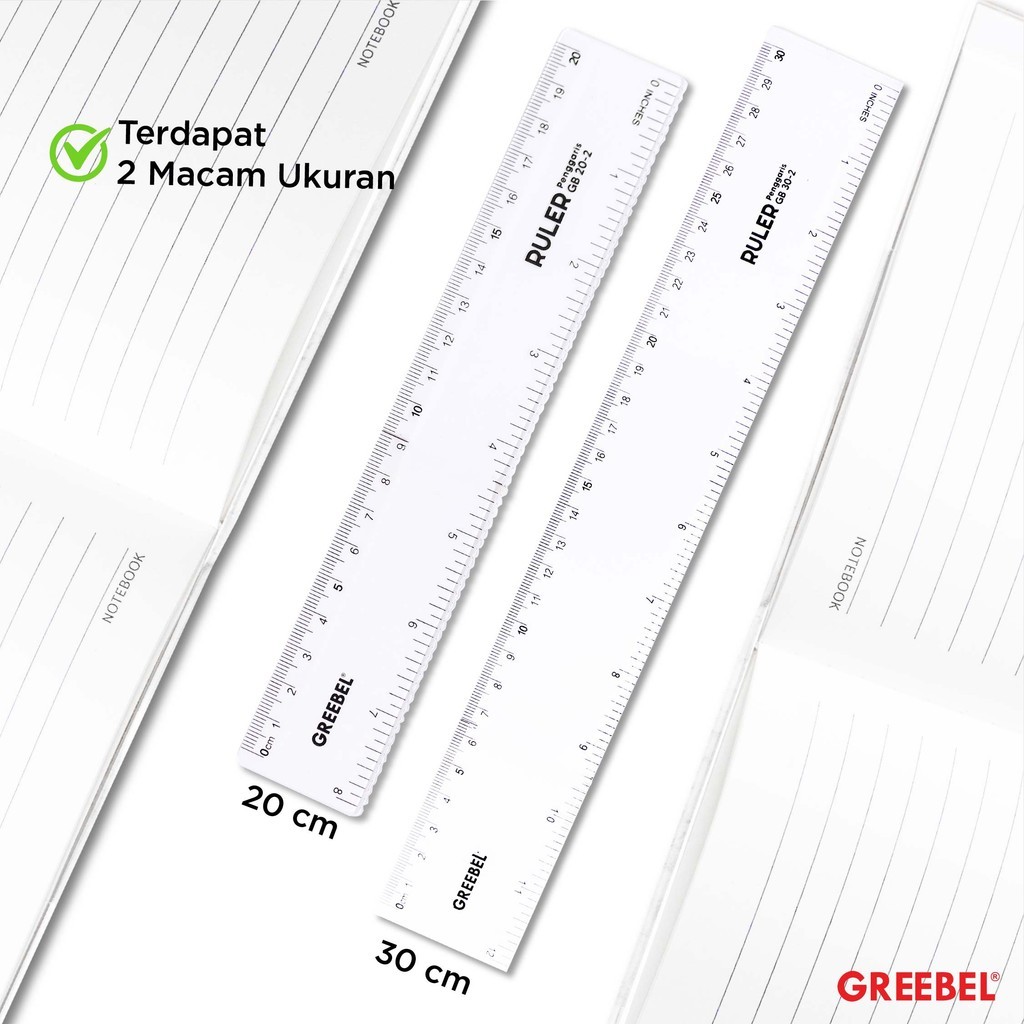 GREEBEL Penggaris Plastik 20cm / Penggaris Panjang Bening 20cm / Ruler 20-2 / Lebih Kuat