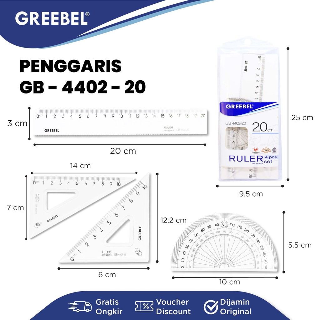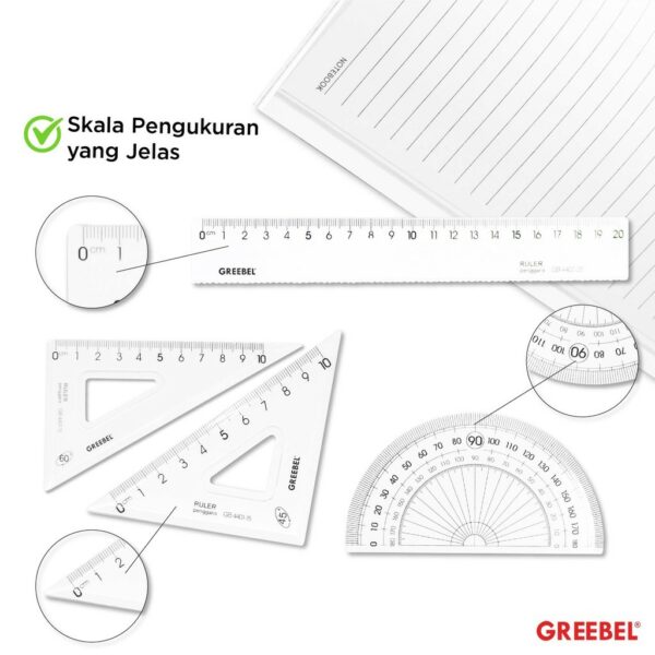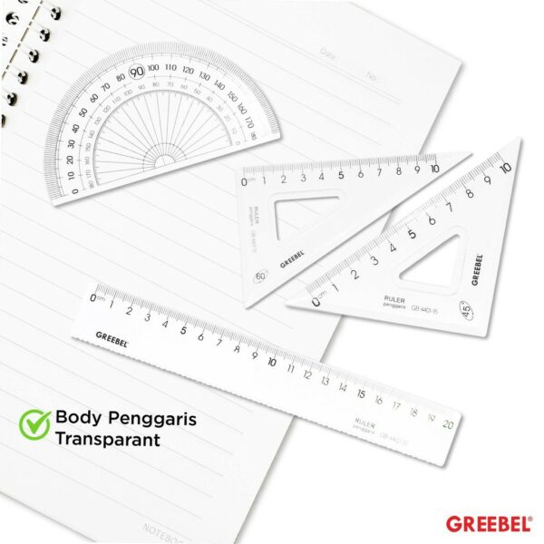 GREEBEL Penggaris Set 4IN1 20Cm 4402-20 / Penggaris Ruller Bening Isi 4Pcs / Ruller Set Transparant Perlengkapan Sekolah