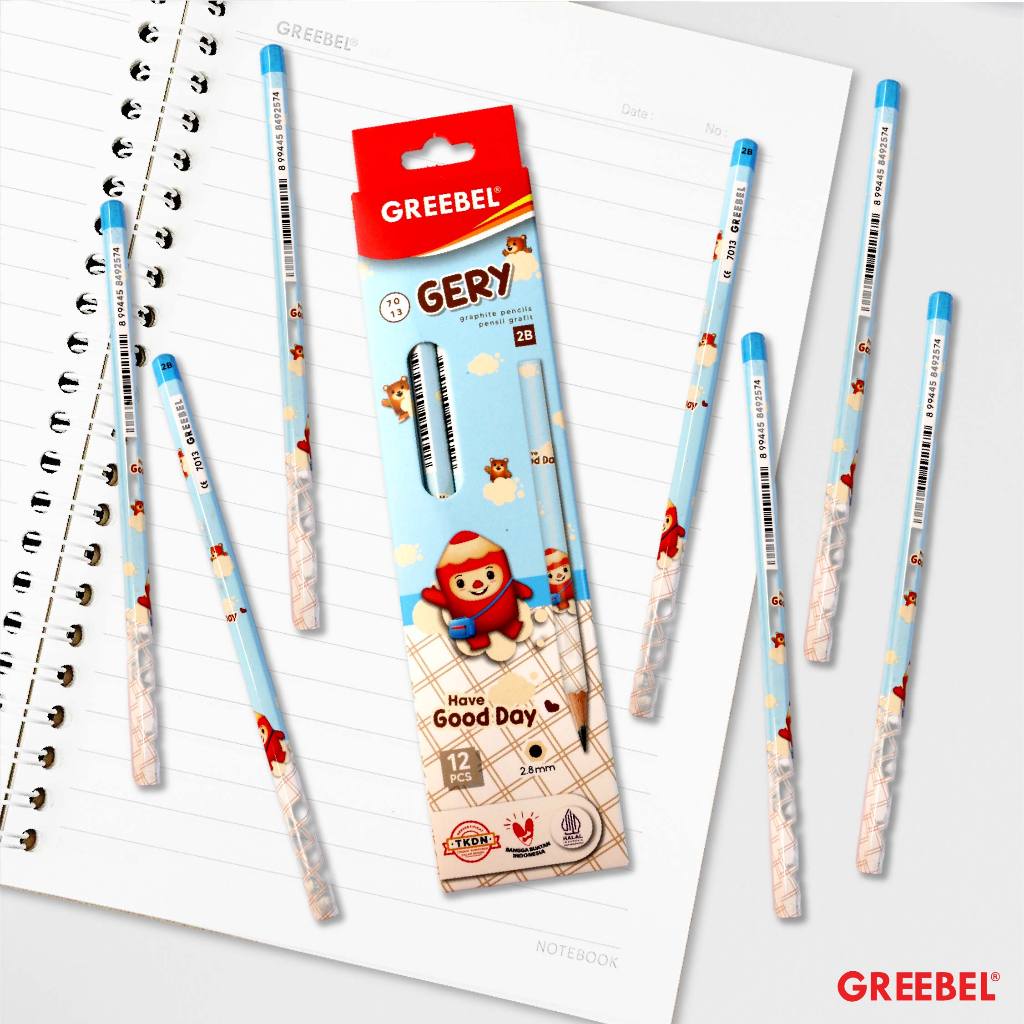 GREEBEL Pensil kayu 2B 7013 Mascott (12PCS/SET) / Pensil Tulis Karakter Graphite Ujian sekolah Pensil Gambar
