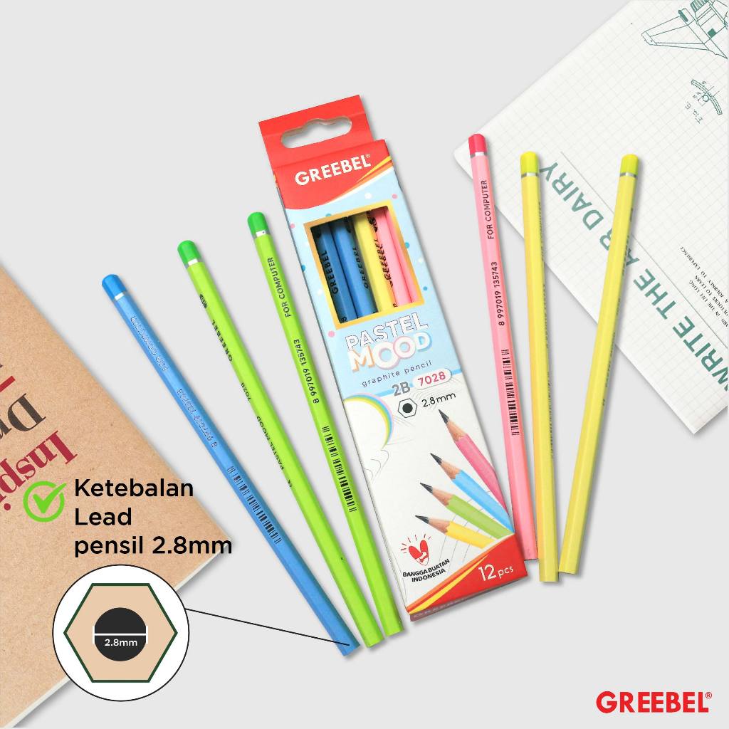 GREEBEL Pensil Kayu 2B 7028 (12PCS/SET) Pastel Mood / Pensil Tulis / Grafit / Graphite / Pensil Ujian Sekolah / Pensil Gambar