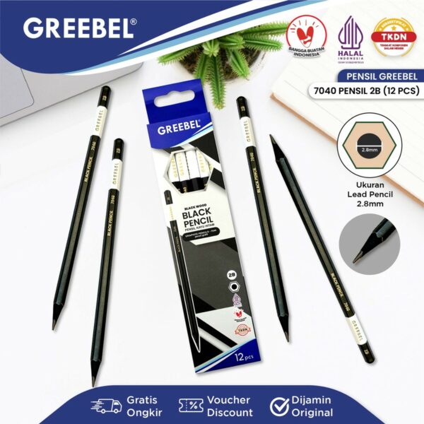 GREEBEL Pensil kayu 2B 7040 Black Pencil (12PCS/SET) / Pensil Tulis Black Graphite Ujian sekolah Pensil Gambar