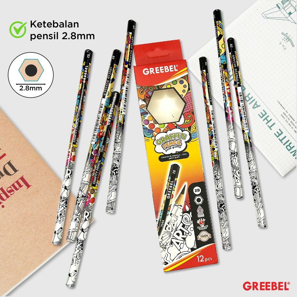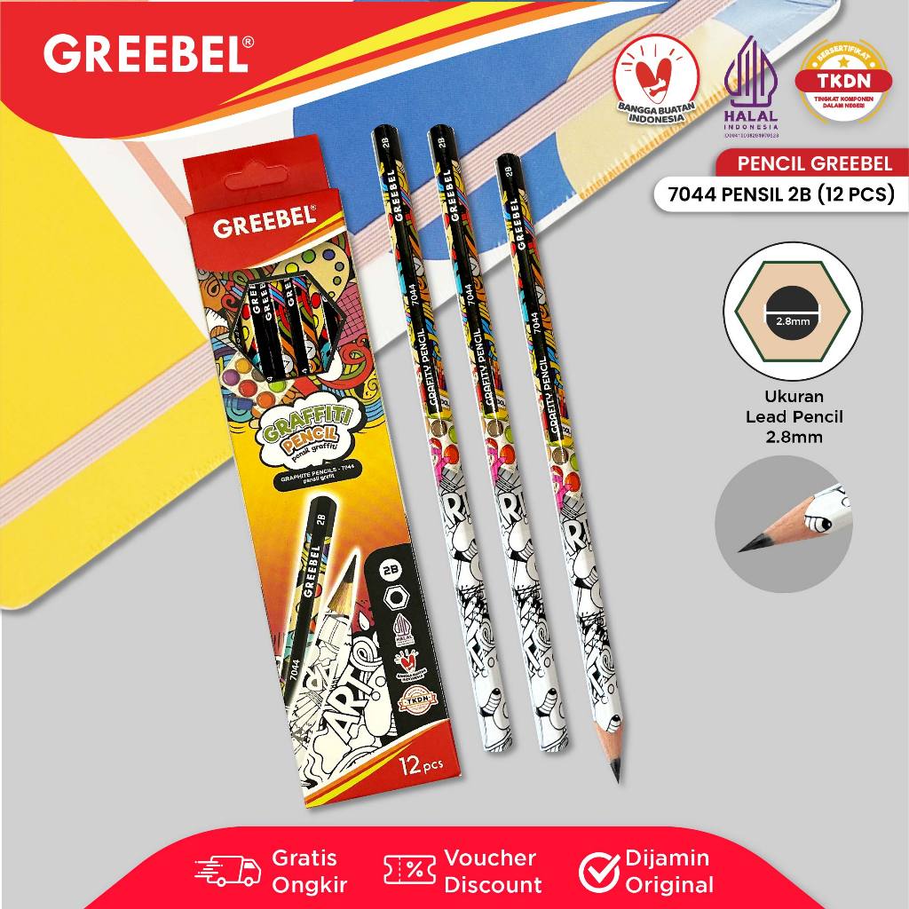 GREEBEL Pensil kayu 2B 7044 Grafity (12PCS/SET) / Pensil Tulis Karakter Graphite Ujian sekolah Pensil Gambar