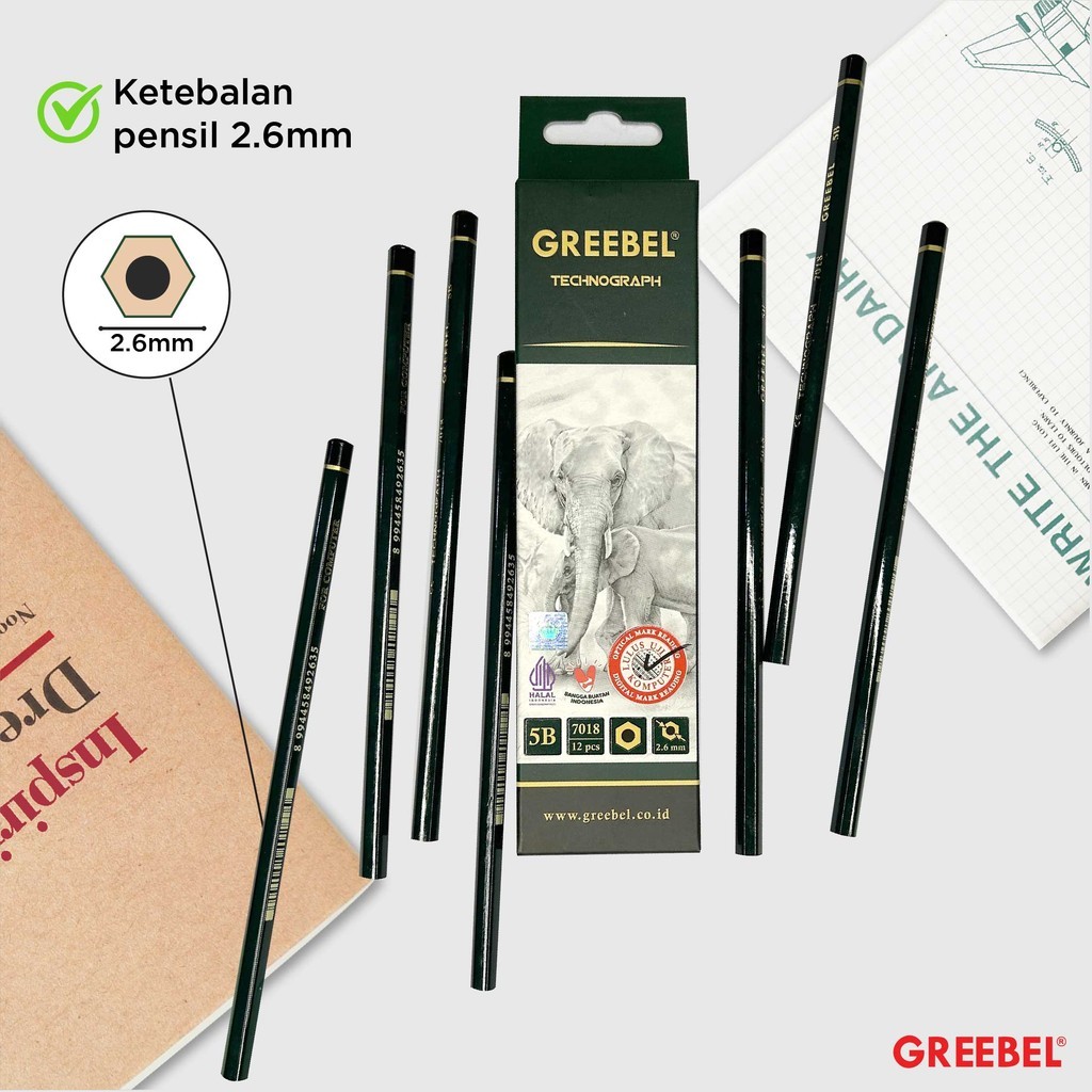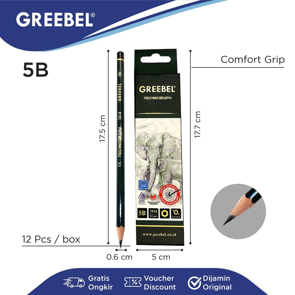 GREEBEL Pensil kayu 5B 7018 (12PCS/SET) / / Pensil Tulis Ujian Sekolah Pensil Gambar
